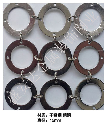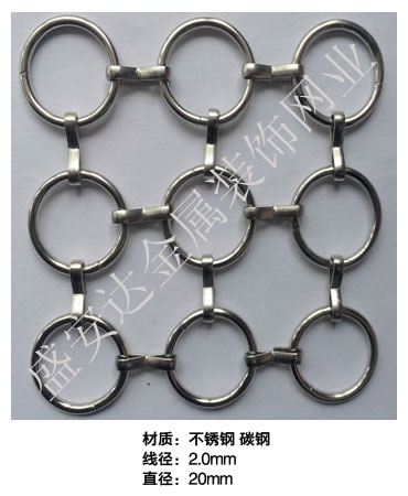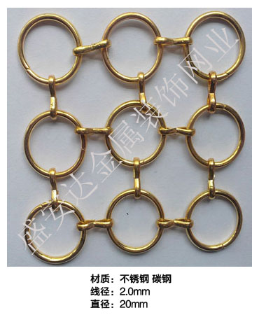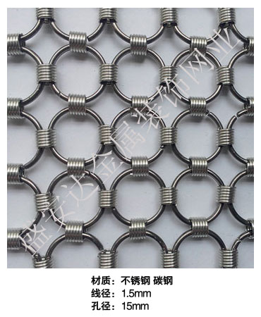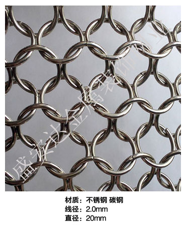 金屬網(wǎng)簾----是一種新型建筑裝飾材料,采用優(yōu)質(zhì)不銹鋼,鋁合金等合金材料,經(jīng)過特殊工藝編制而成,被賦予了傳統(tǒng)布簾所不具有的的折光效果,讓它具有了動感時尚的特點,再加上它的金屬質(zhì)感的特點,給您的居室頓感典雅氣質(zhì)非凡個性高貴品位,會使高檔賓館,餐廳,歌劇院,展廳變的富麗堂皇。