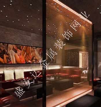 金屬網(wǎng)簾可被應(yīng)用于大尺寸的割斷或正面裝飾,亦可小面積的局部裝點。其天然金屬色澤隨著光線的不同變化余燈光產(chǎn)生的反射作用,透過金屬網(wǎng),形成一個隔而不斷的整體空間,給人以視覺上的開闊感,想象空間無限。